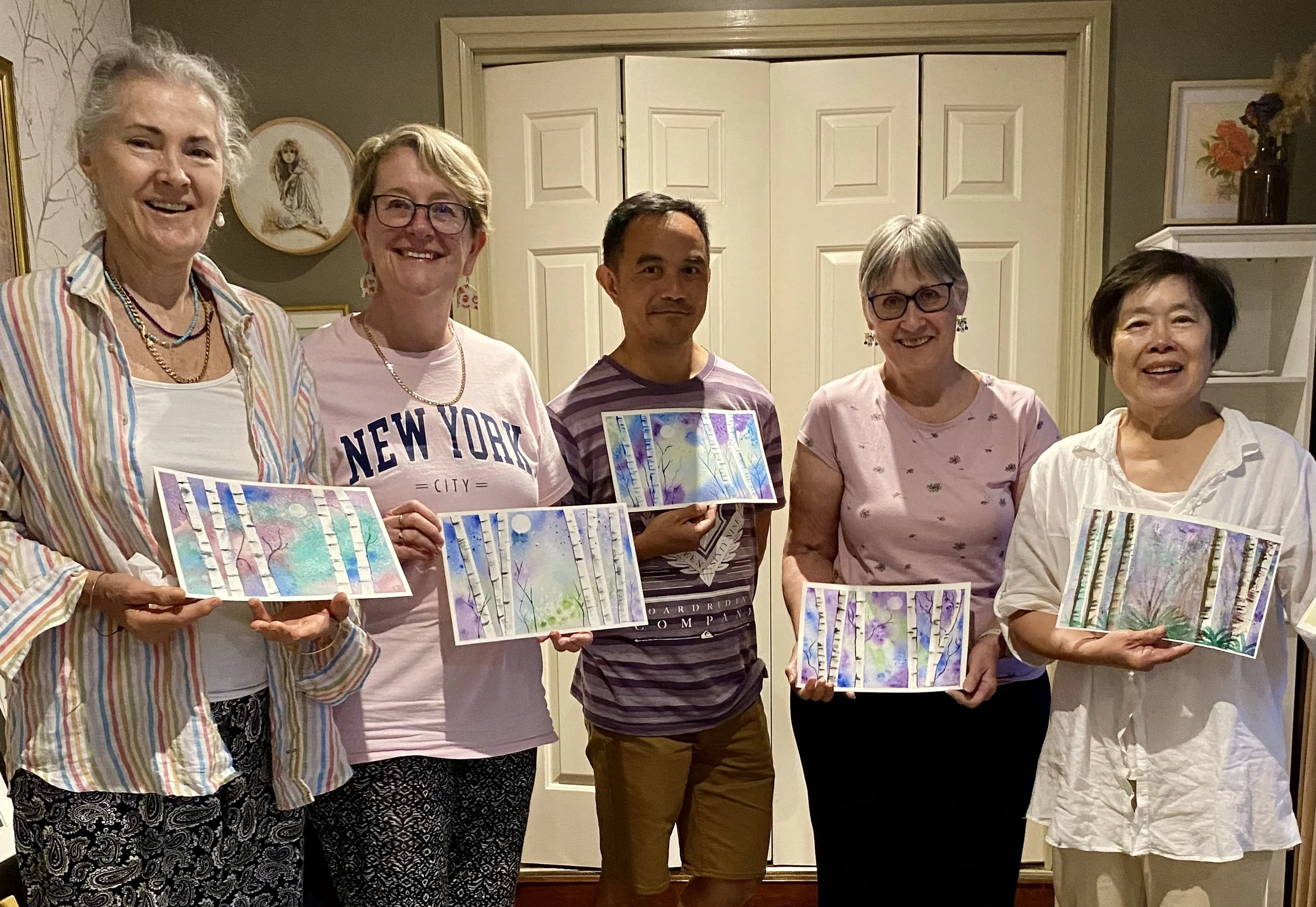 These lovely Volunteer Carers from Alfred Health took a little time out to enjoy a Beginners Watercolour Class here at Gallery47. We had such a fun, relaxed session, lots of laughs, lots of colour, and everyone went home with a beautiful painting (and a new creative spark!).